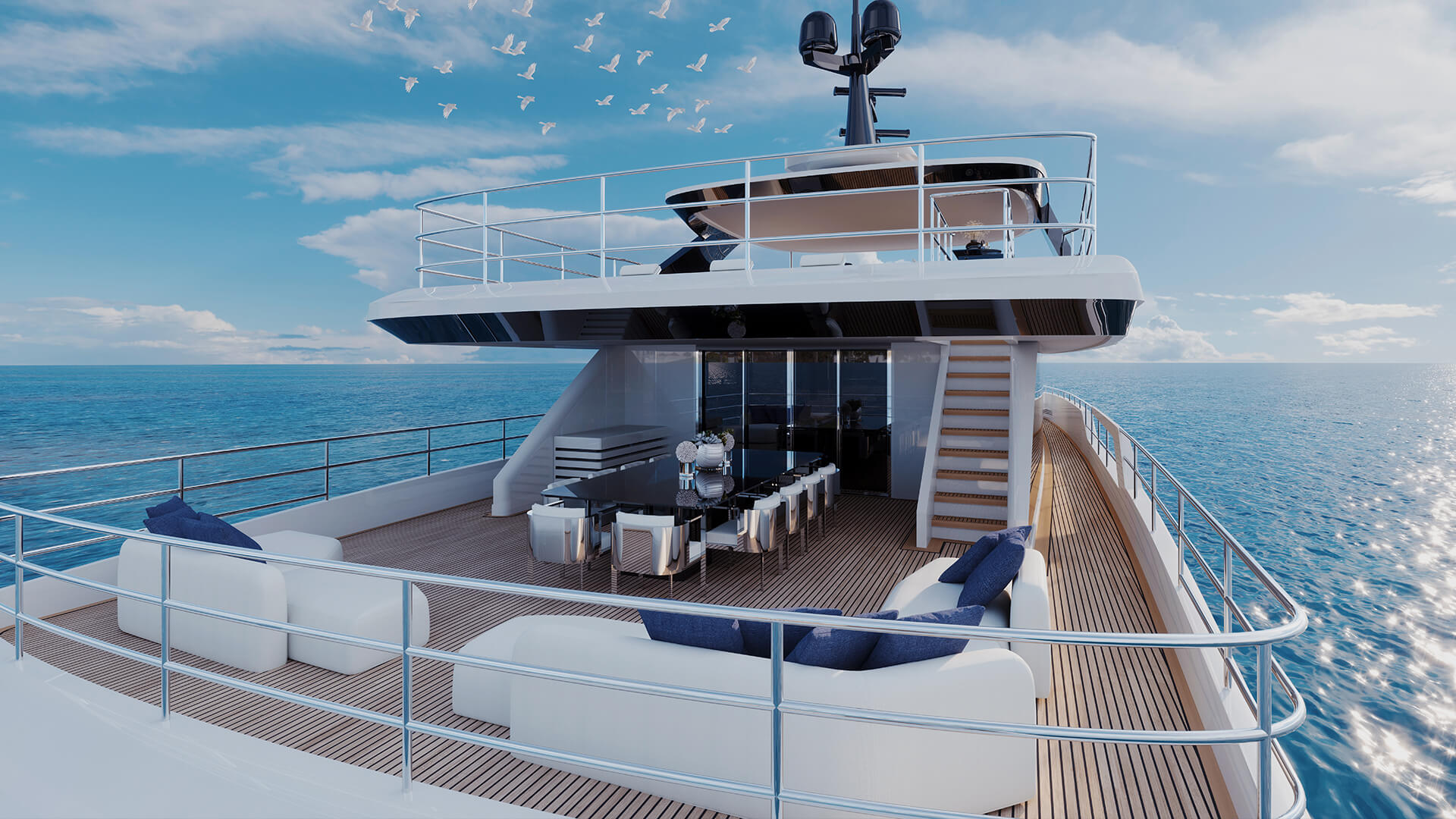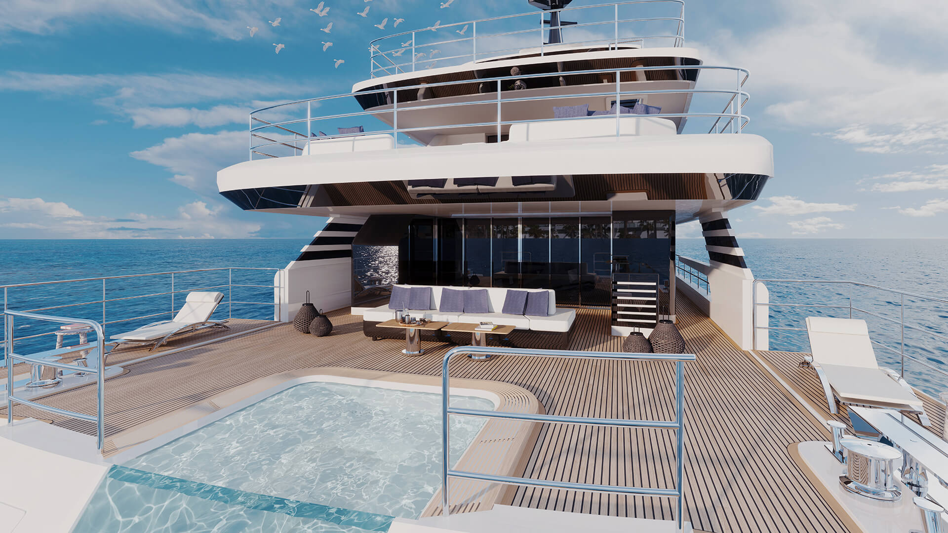 Owner’s suite on the main deck with private terrace and privacy glass technology.